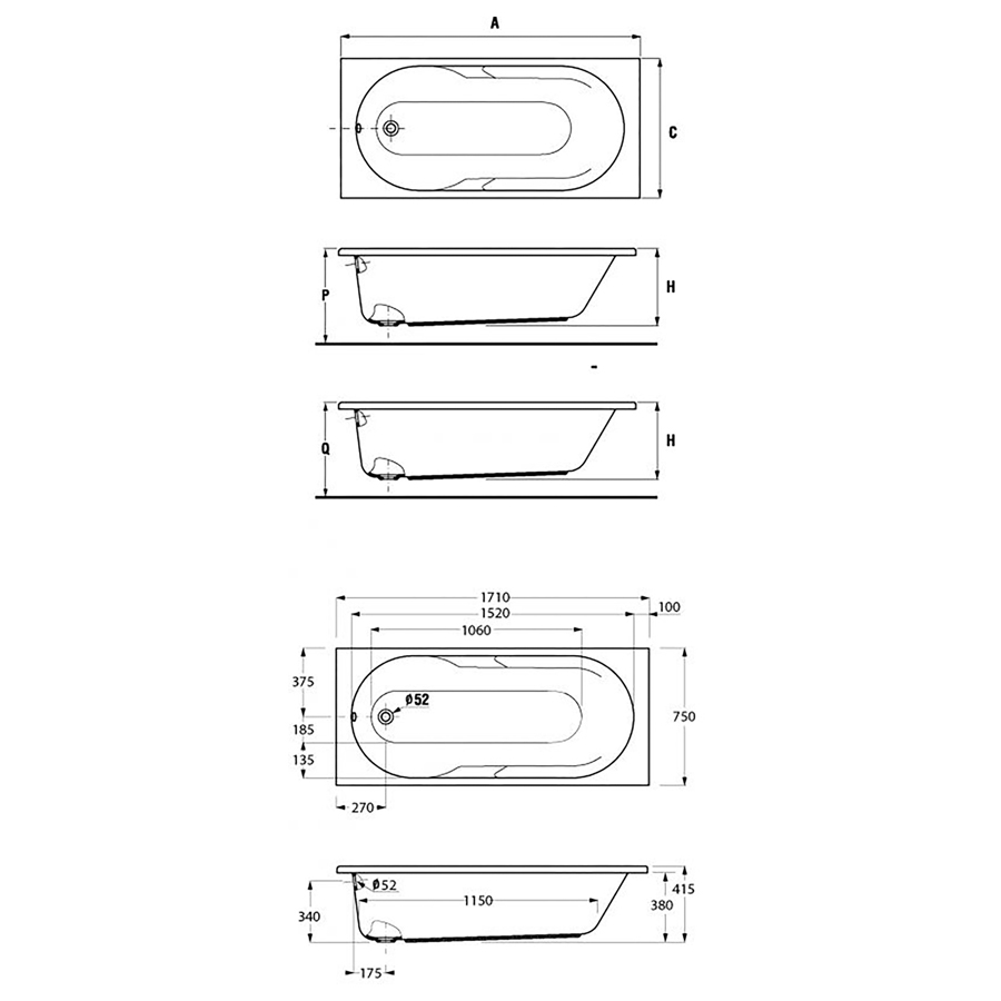 Lyra vaňa 1500 × 700 mm, vrátane podpier