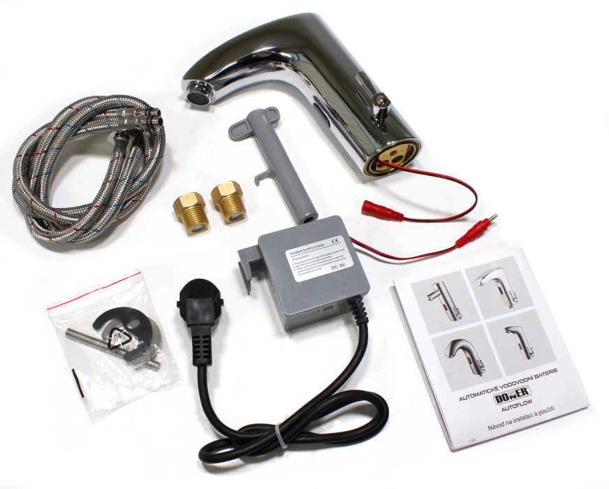 Donner AutoFlow 02 je napájaná pomocou 4 kusov ceruzkových batérií AA. Batérie sa umiestňujú do puzdra do priestoru pod umývadlom. Nie je nutné riešiť napájanie z elektrickej siete, a navyše je úplne eliminované riziko úrazu elektrickým prúdom. Pri použití kvalitných alkalických batérií a 200 zopnutí za deň je výdrž batérií až 1 rok. V prípade, že sa batérie vybijú, voda zostáva uzavretá.