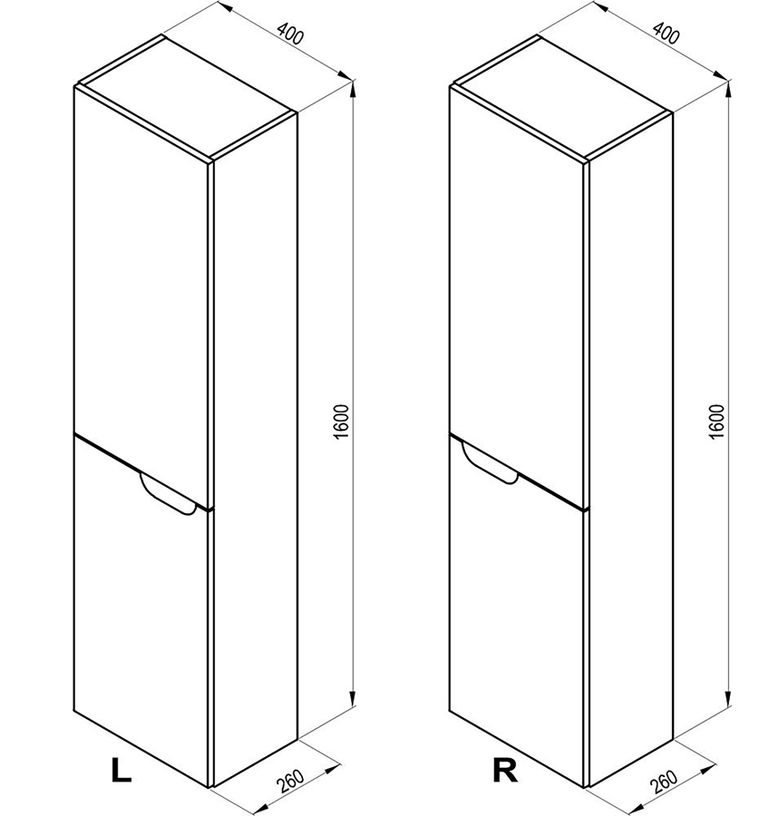 – rozmery (dxšxv): 40 x 26 x 160 cm