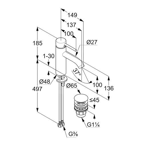 Kludi BOZZ Jednopáková umývadlová batéria 100, bez odpadovej súpravy, chróm