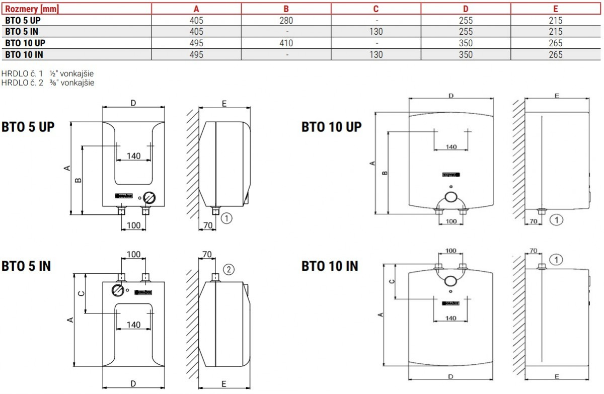 5BTO 10 UP elektrický beztlakový ohrievač vody 10 l