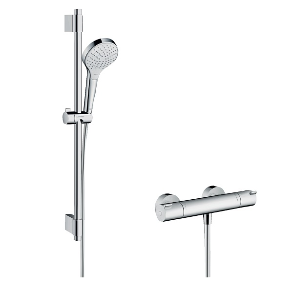 Hansgrohe Croma Select S – Sprchový systém na stenu Vario s termostatom Ecostat 1001 CL a sprchovou tyčou 72 cm, biela/chróm