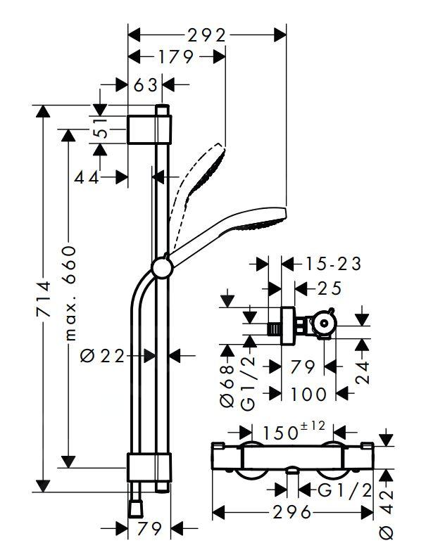 – zahŕňa: ručná sprcha, sprchový termostat, sprchová tyč, jazdec, sprchová hadica