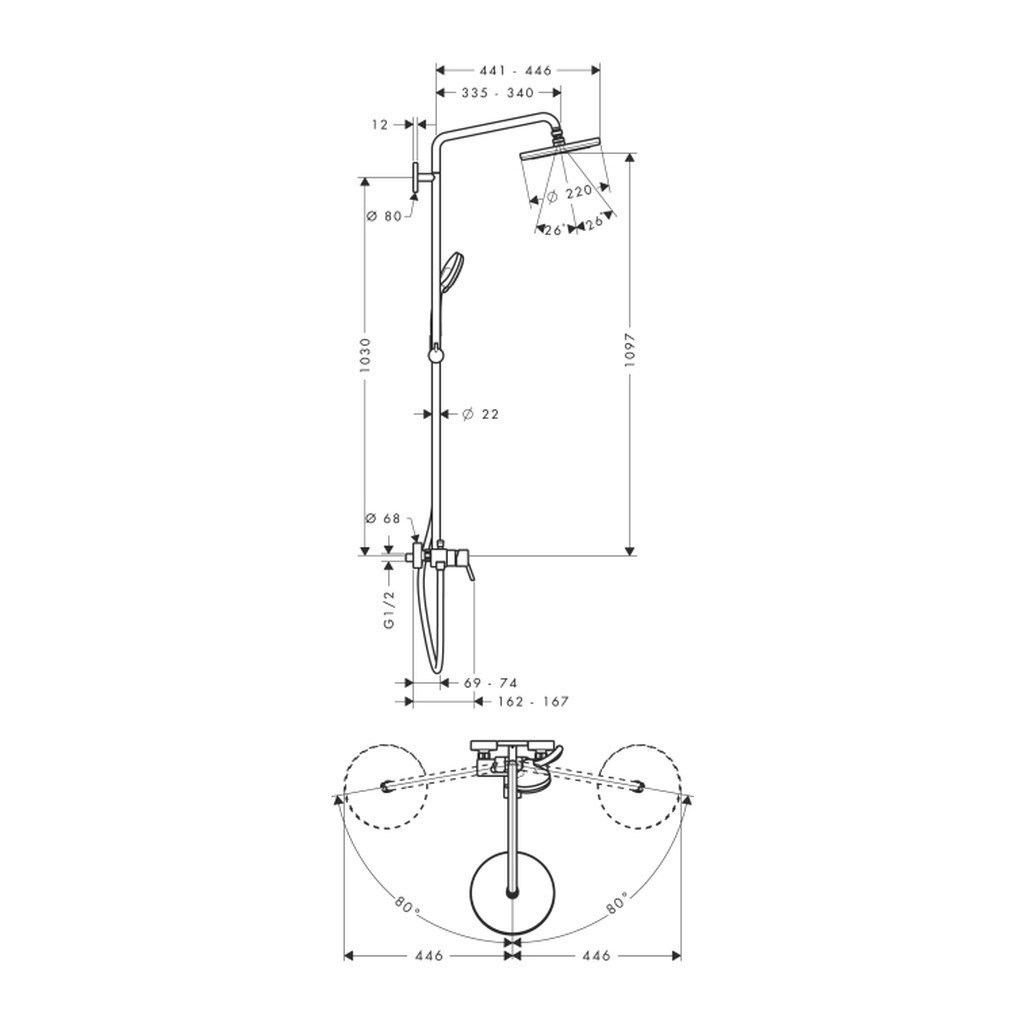 Hansgrohe Croma – Showerpipe 220 1jet s pákovou batériou, chróm