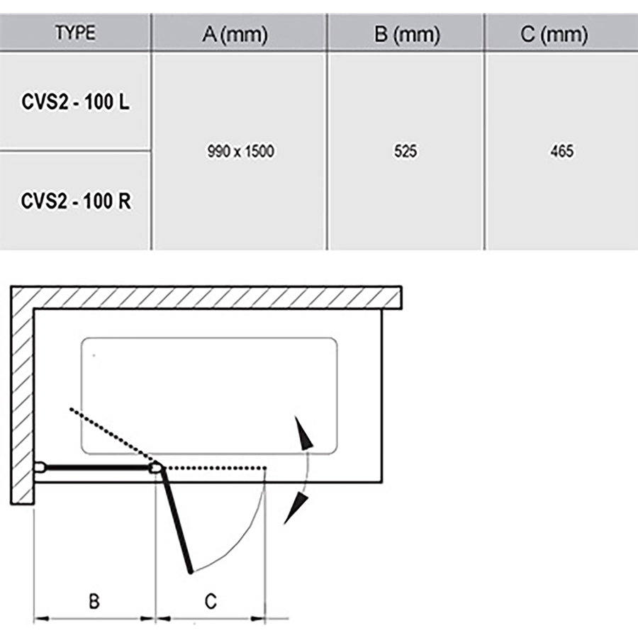 CVS2-100 vaňová zástena dvojdielna,ľavá