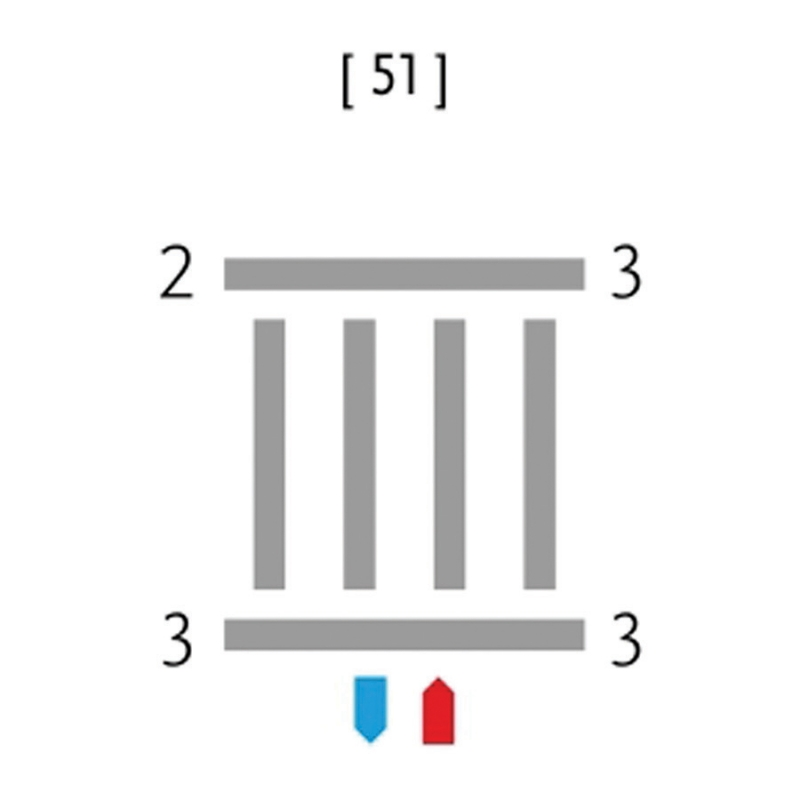 Štandardne dodávané v bielom (01) alebo lesklom grafite (05) so stredovým spodným pripojením s rozstupom 50 mm (51). Ventily a závesy zobrazené na fotografii sú voliteľnou výbavou, ktorá je k dispozícii za príplatok.