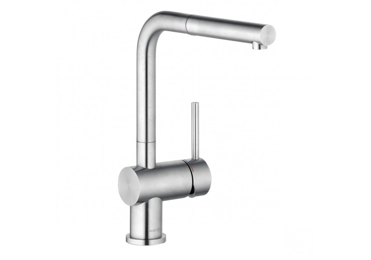 Drezová batéria Kludi L Steel, s vyťahovacím výtokom, DN 15, kefovaná oceľ