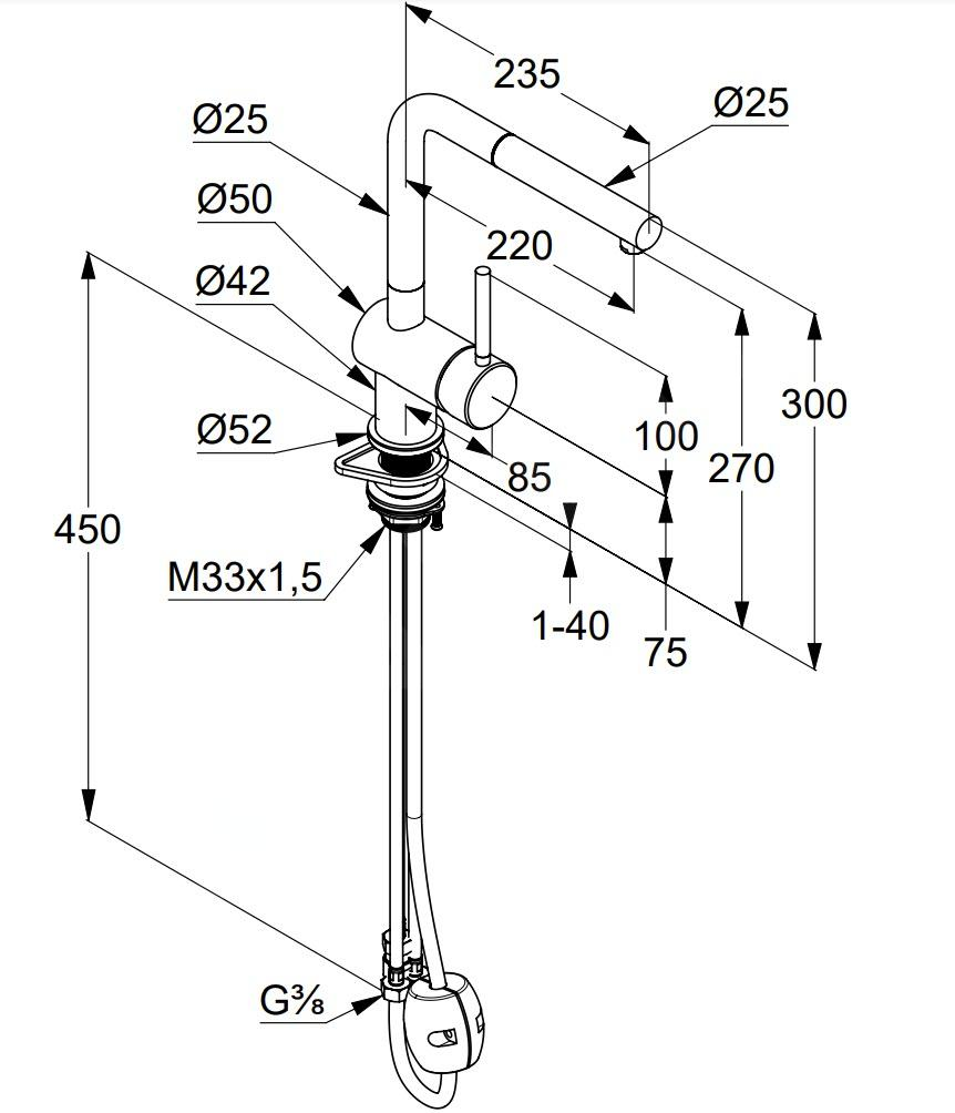 Domov Kuchyňa Drezové batérie Stojánkové batérie Drezová batéria Kludi L Steel, s vyťahovacím výtokom, DN 15, kefovaná oceľ