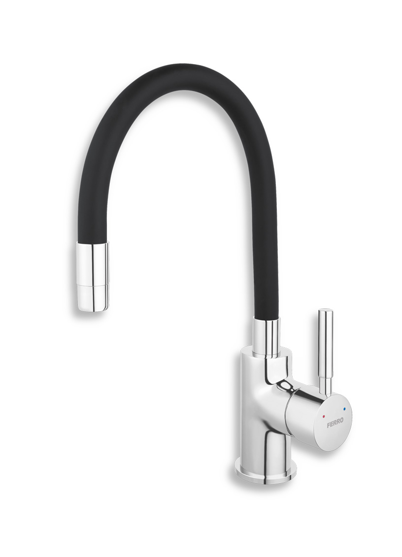 Kvalitná a odolná, keramická kartuš 35 mm s 5 ročnou zárukou. Prvotriedna povrchová úprava a chróm. Stojanková drezová batéria s čiernym FLEXI ramenom. Súčasťou batérie sú prívodové hadičky.