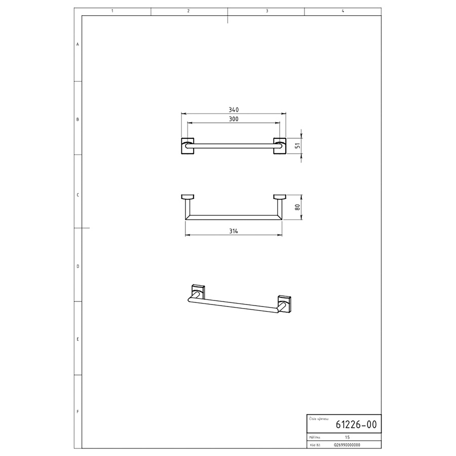 Držiak uterákov 300 mm chromový. Montáž lepením alebo vrtaním.