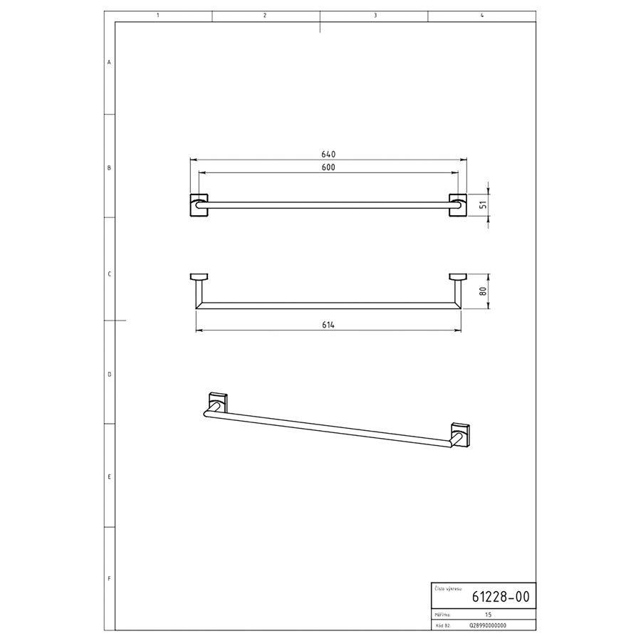 Držiak uterákov 600 mm chromový. Montáž lepením alebo vrtaním.