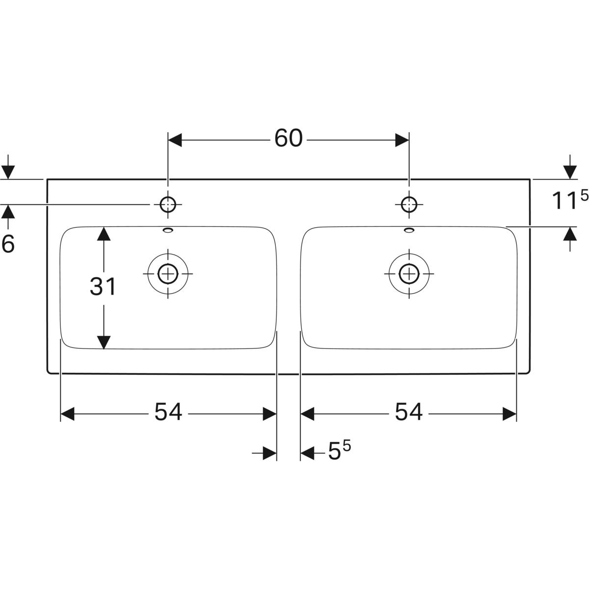 iCon dvojumývadlo s 2 otvormi pre batériu, s prepadom 120 x 48,5 cm