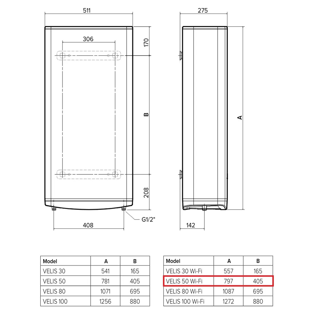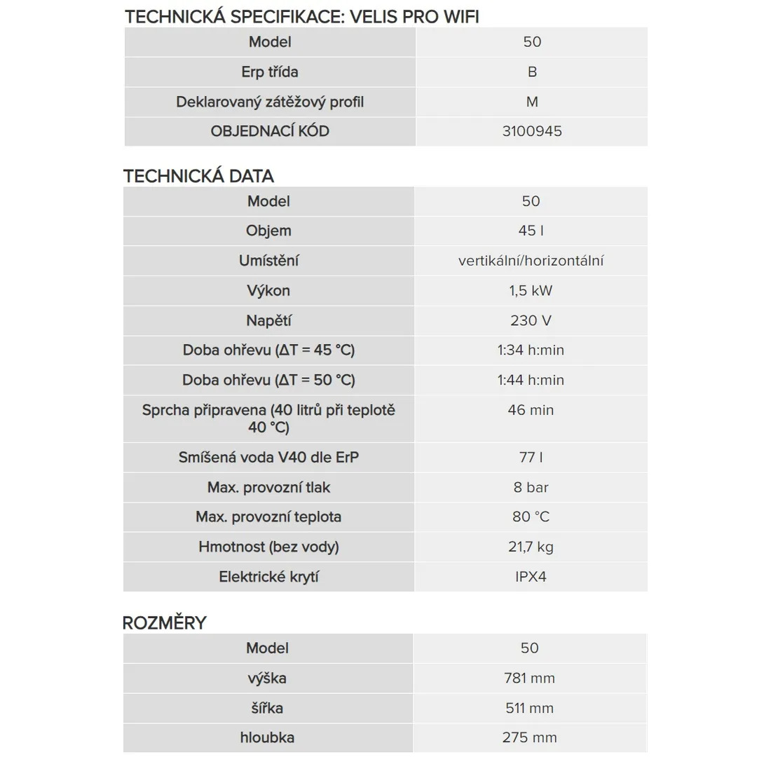 Stredný elektrický ohrievač VELIS PRO WIFI 50