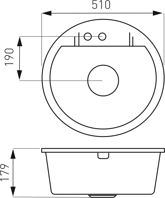 Granitový drez s prepadom. Drez má priemer 51 cm a hĺbku 17,9 cm. Automatické otváranie a zatváranie výpusti gombíkom. Súčasťou balenia je sifón. 15 ročná záruka.