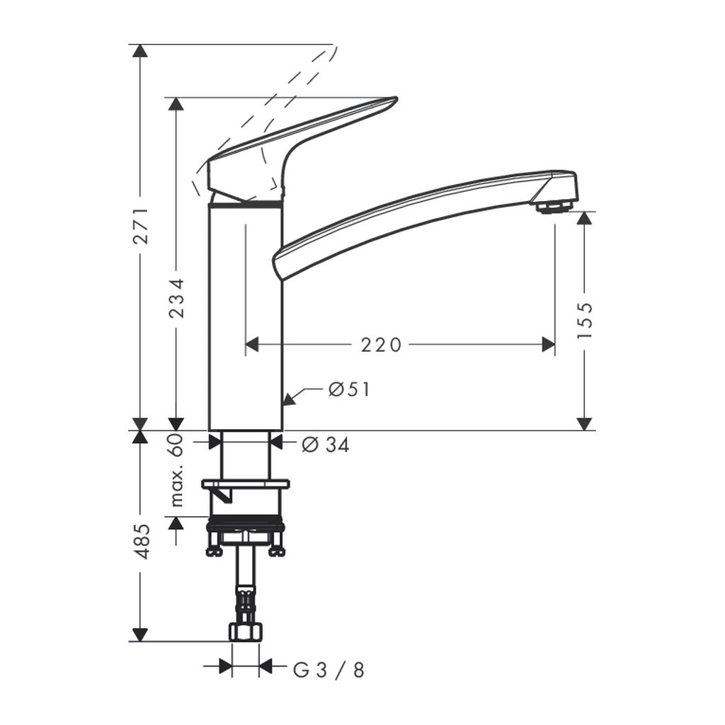 Typ pripojenia: Prípojné hadice G 3/8