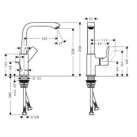 HG Metris Umývadlová páková batéria 230 DN15