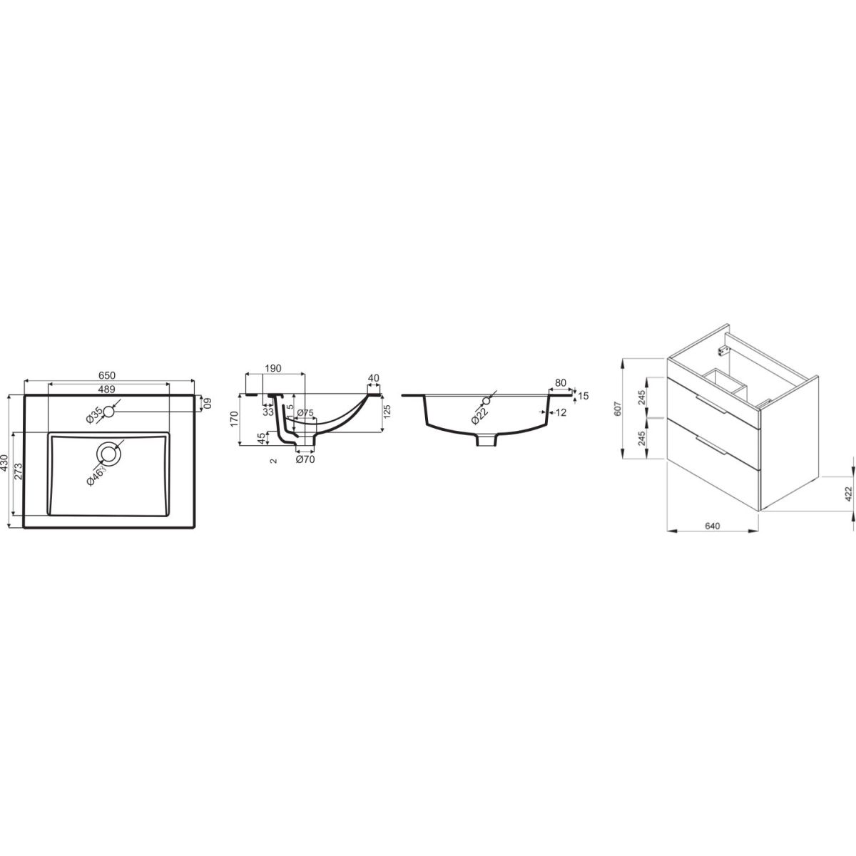 Skrinka s umývadlom 550x430 mm JIKA Cube, 2 zásuvky, jaseň