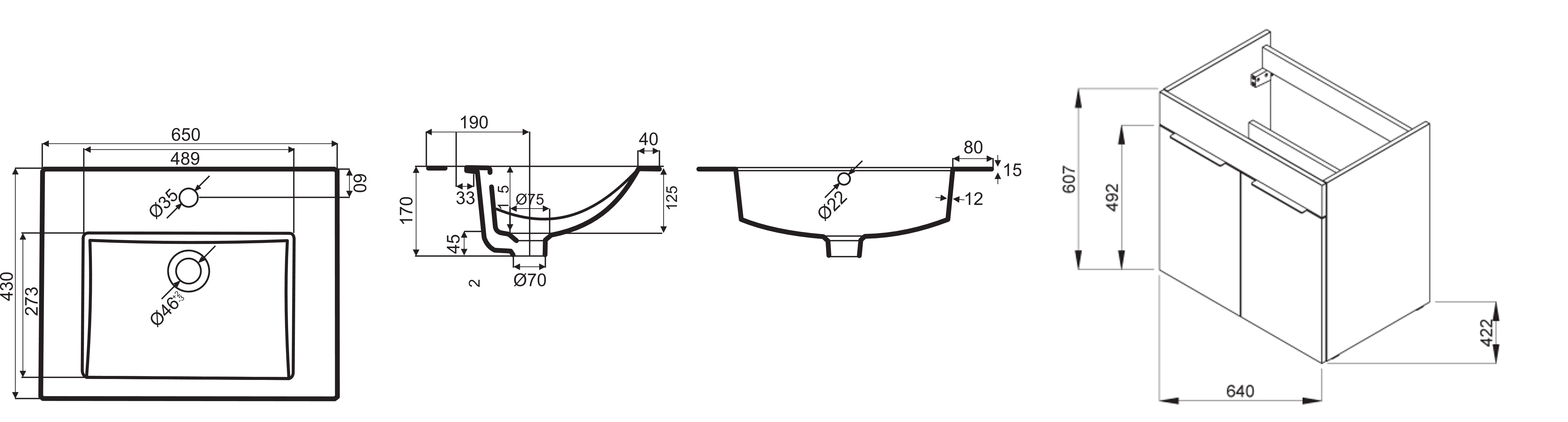 Domov Nábytok Skrinky s umývadlom Jika CUBE Skrinka s umývadlom 650×430 mm, 2 zásuvky, matný antracit