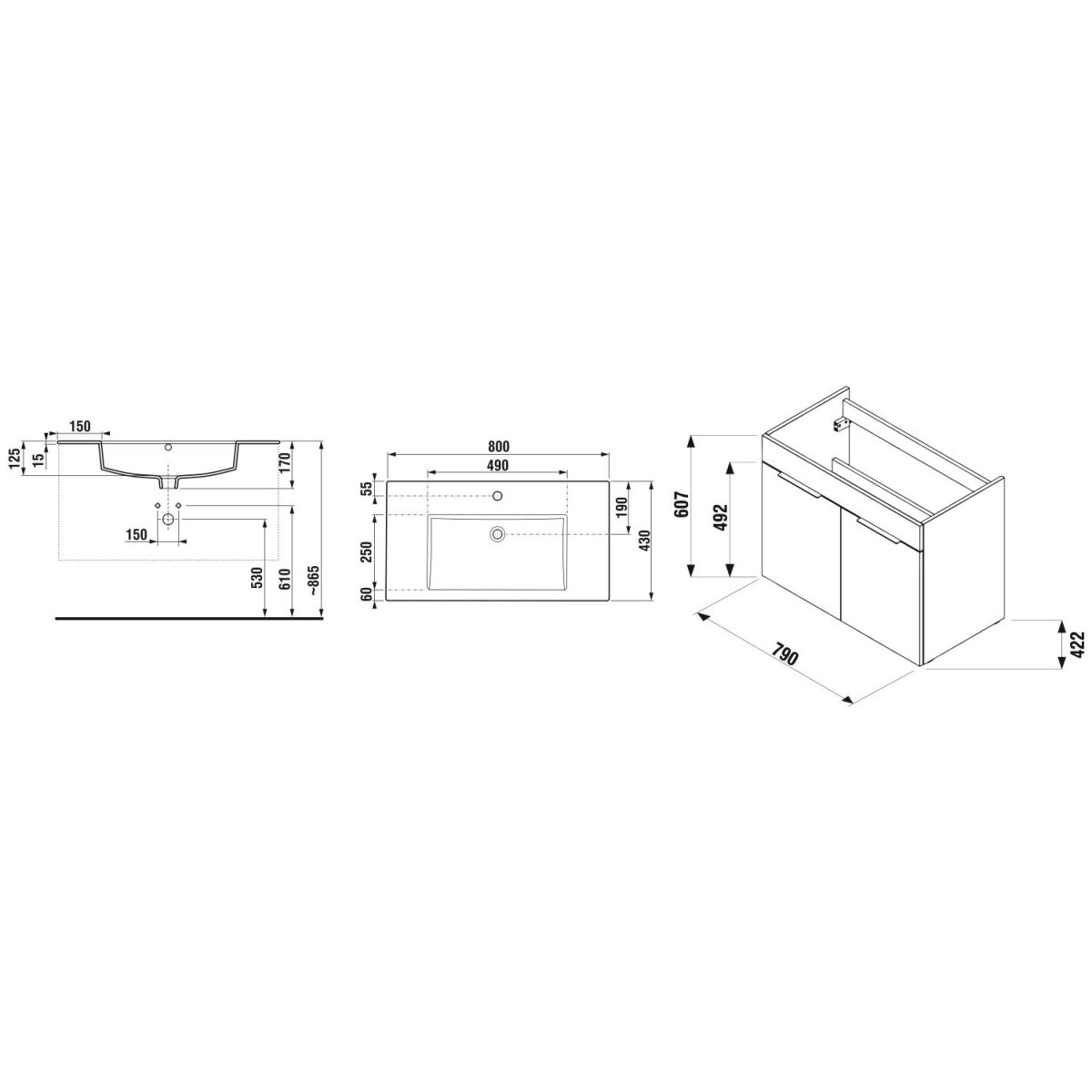 Jika CUBE Skrinka s umývadlom 800×430 mm, 2 dvierka, jaseň