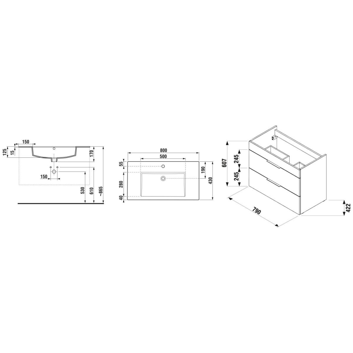 Jika CUBE Skrinka s umývadlom 800×430 mm, 2 zásuvky, jaseň