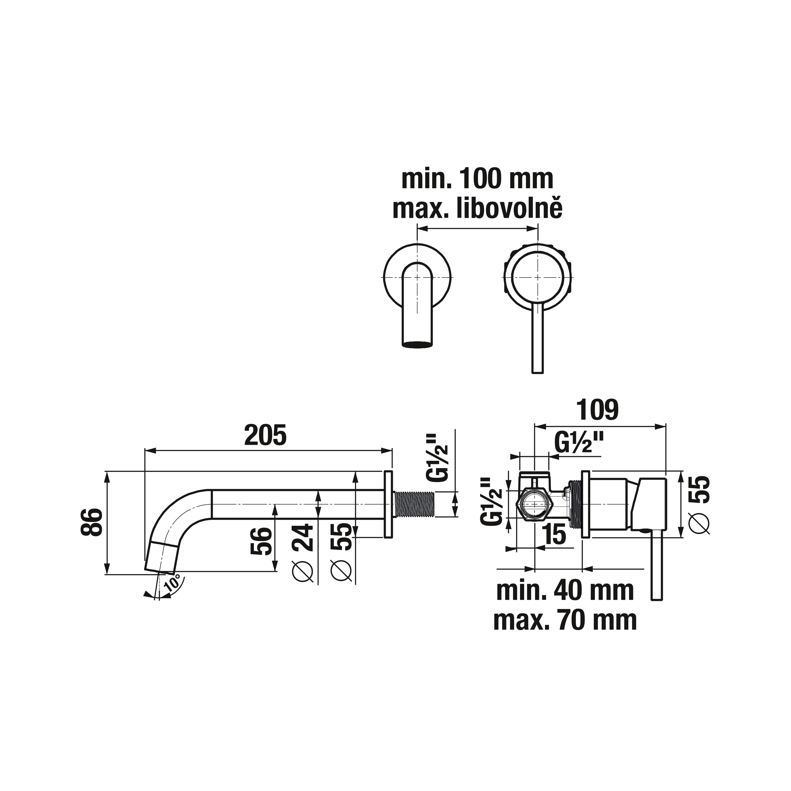 Jika MIO STYLE Umývadlová podomietková batéria, mosadzné teleso + vrchná sada, čierna matná