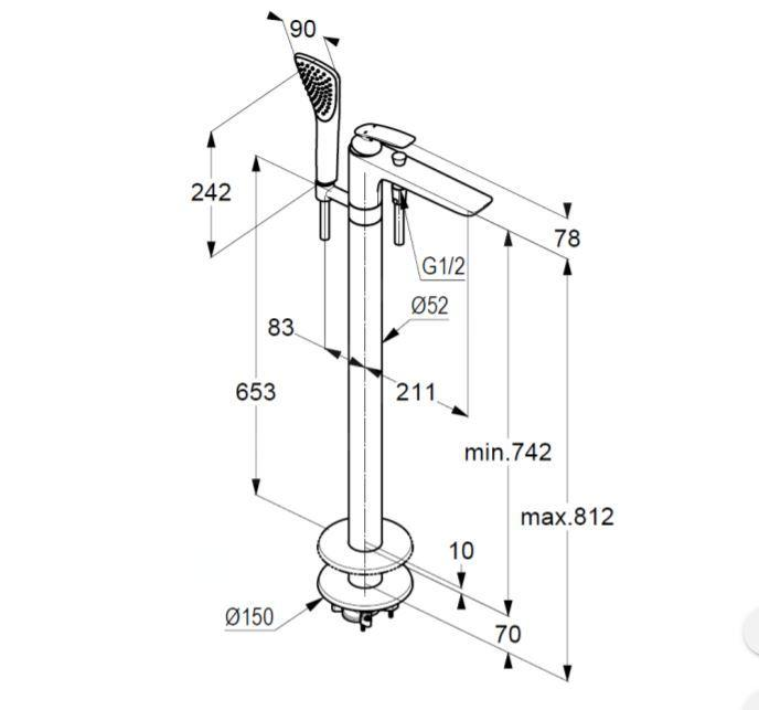 Kludi Balance – Vaňová batéria na podlahu, čierna mat/chróm