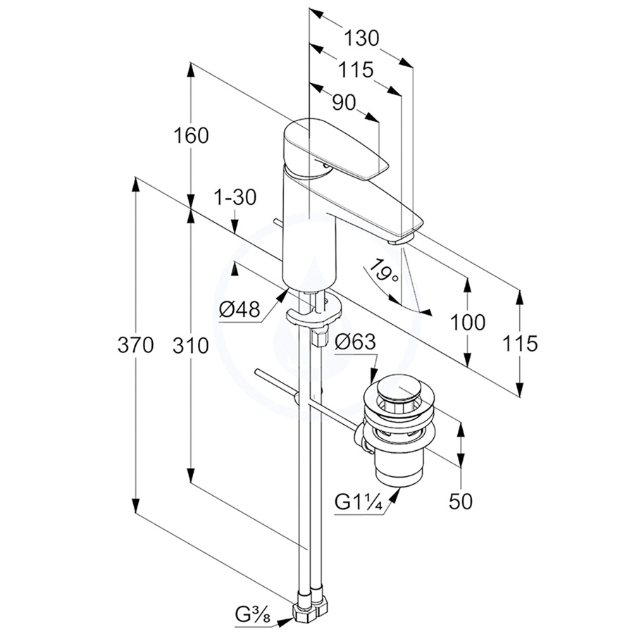 Domov Batérie Umývadlové batérie KLUDI Pure&Solid Umývadlová batéria s výpustom, chróm