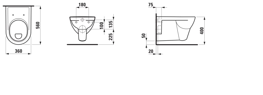 Laufen PRO závesný klozet, ploché splachovanie, biela