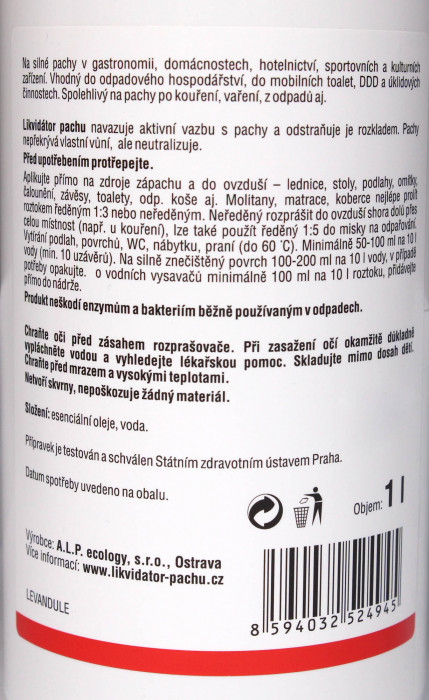 Jedná sa o úplne prírodný – zdravotne nezávadný prípravok, ktorý zápach nielen neutralizuje, ale vďaka prírodným esenciálnym olejom príjemne prevonia okolitý vzduch.