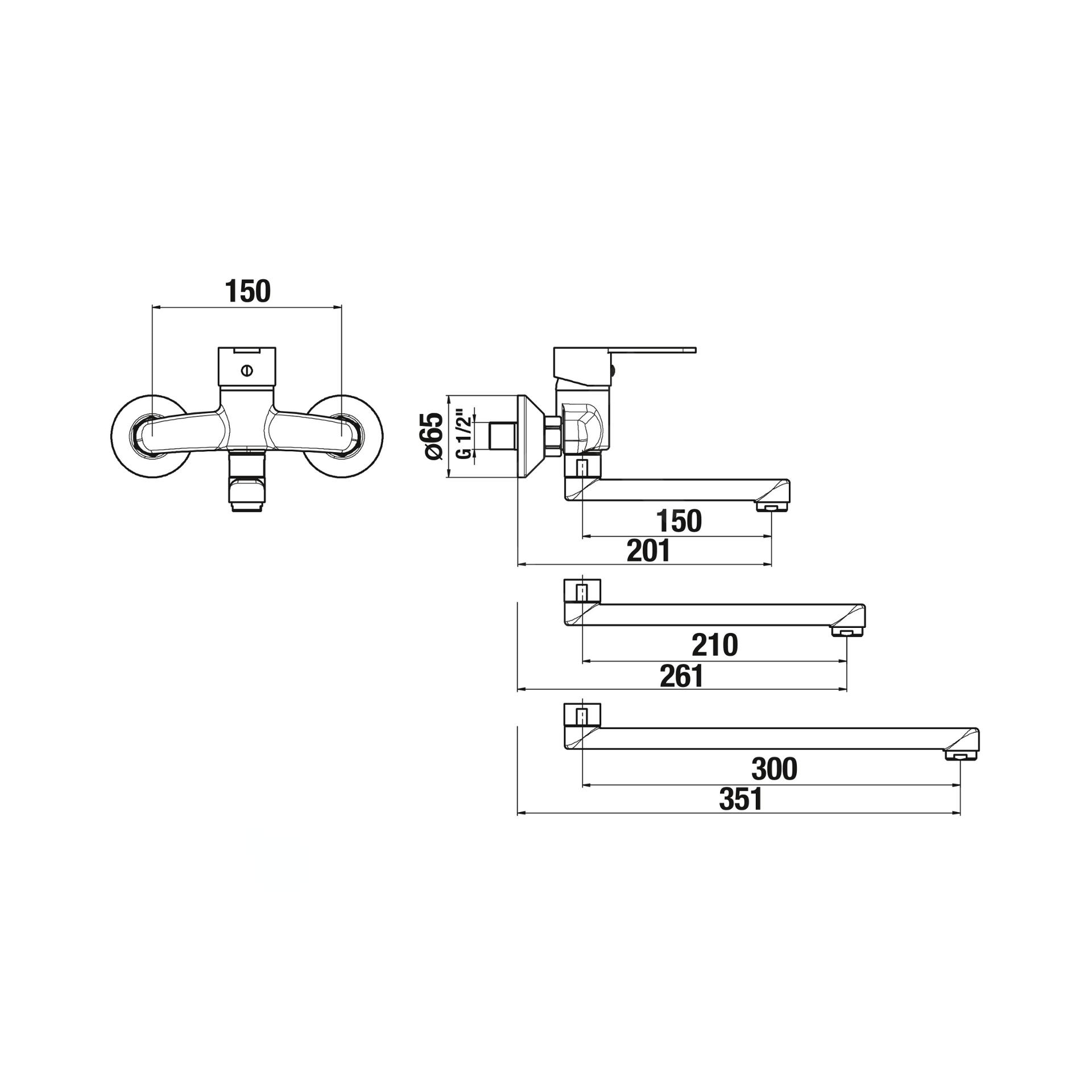 Nástenná umývadlová batéria, výtok 210 mm