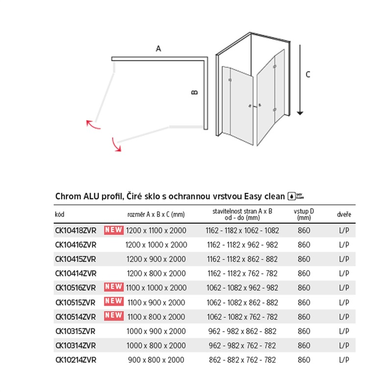 Mereo Novea CK10516ZVR je obdĺžnikový sprchový kút určený na postavenie do rohu. Skladá sa z dvoch otváracích dverí. Má lesklé chrómové profily a bezpečnostné sklo transparent s hrúbkou 6 mm.