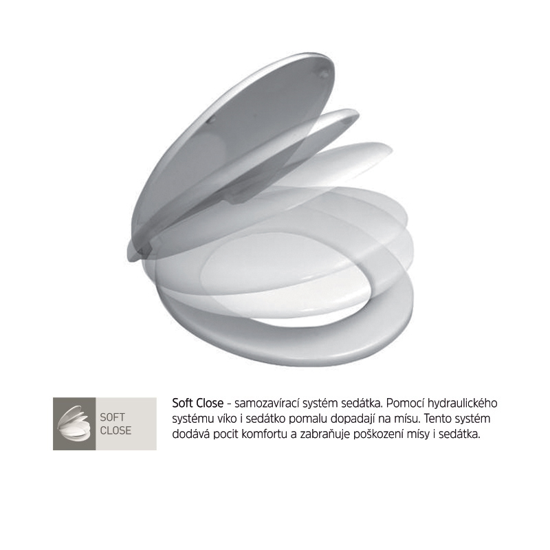 – soft close: samozatvárací systém (pozvoľné sklápanie sedátka aj veka)