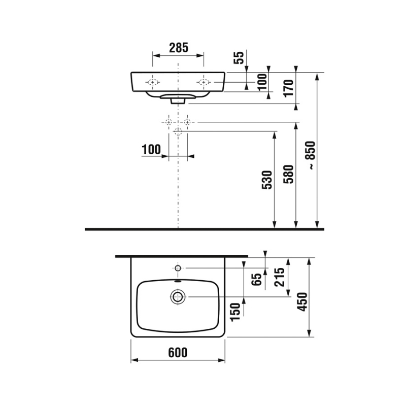 Umývadlová misa obdlžníková LYRA PLUS 55×38 cm, bez armatúrnej dosky, biela