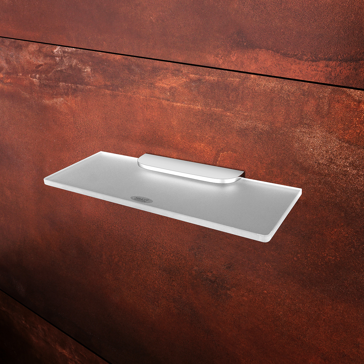 Polica sklenená, sklo biele extra číre matné, úchyt chróm