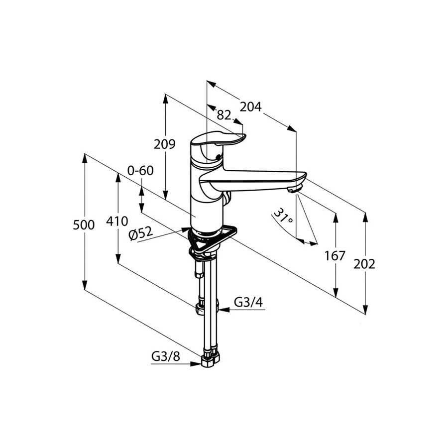 • flexibilné prípojky G 3/8