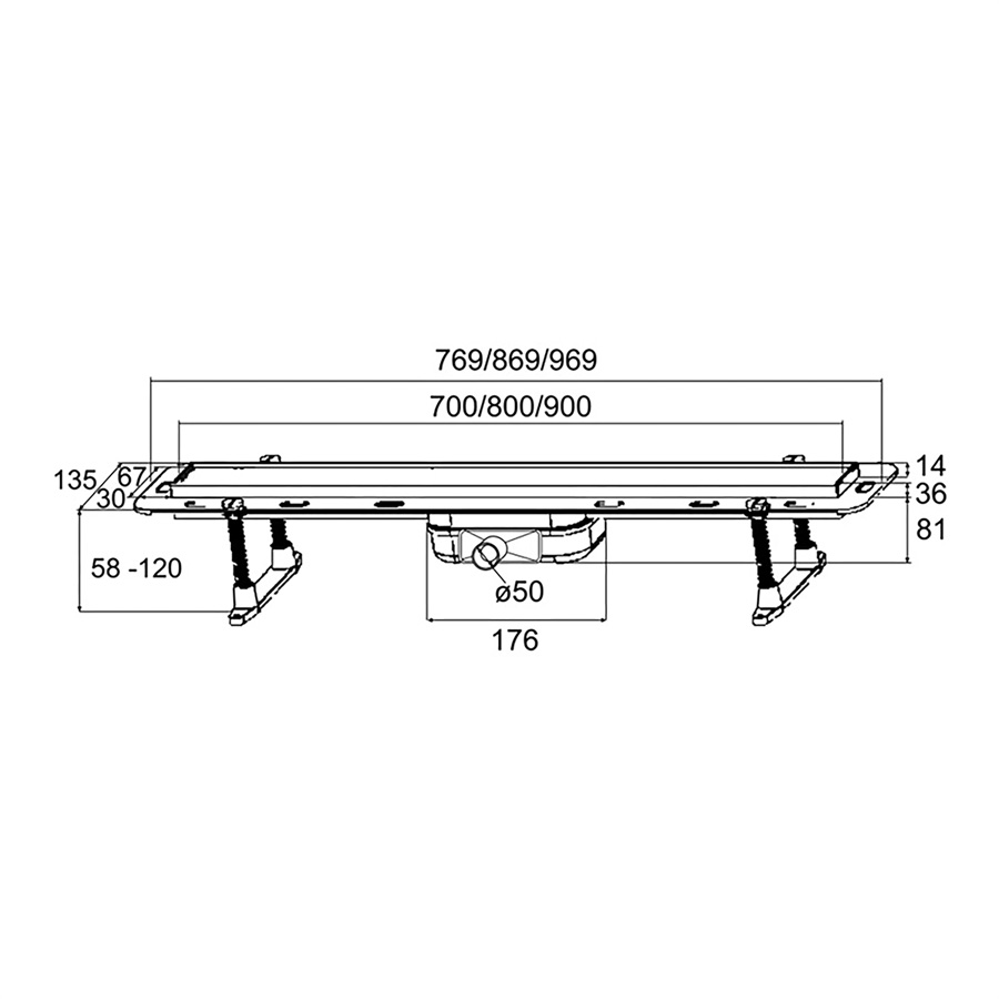 Domov Kúty Príslušenstvo ku kútom Odtokový sprchový žľab, vr. nerez. roštu 90×6,5 cm