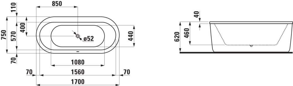 Oválna vaňa s konštrukciou Laufen SOLUTIONS 1700x750 mm, biela