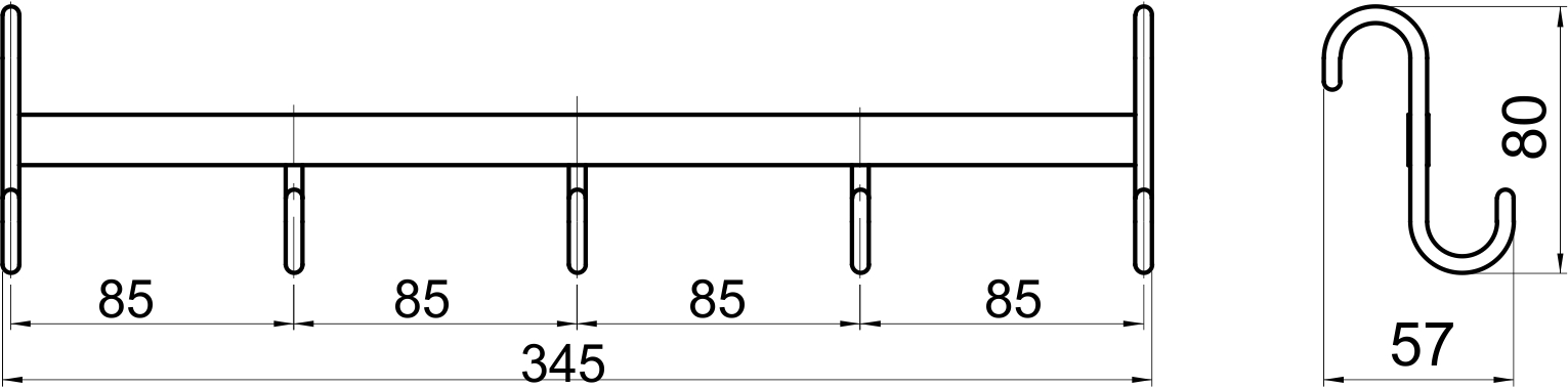 Päťháčik na vykurovací rebr Metalia Drôtený program chróm