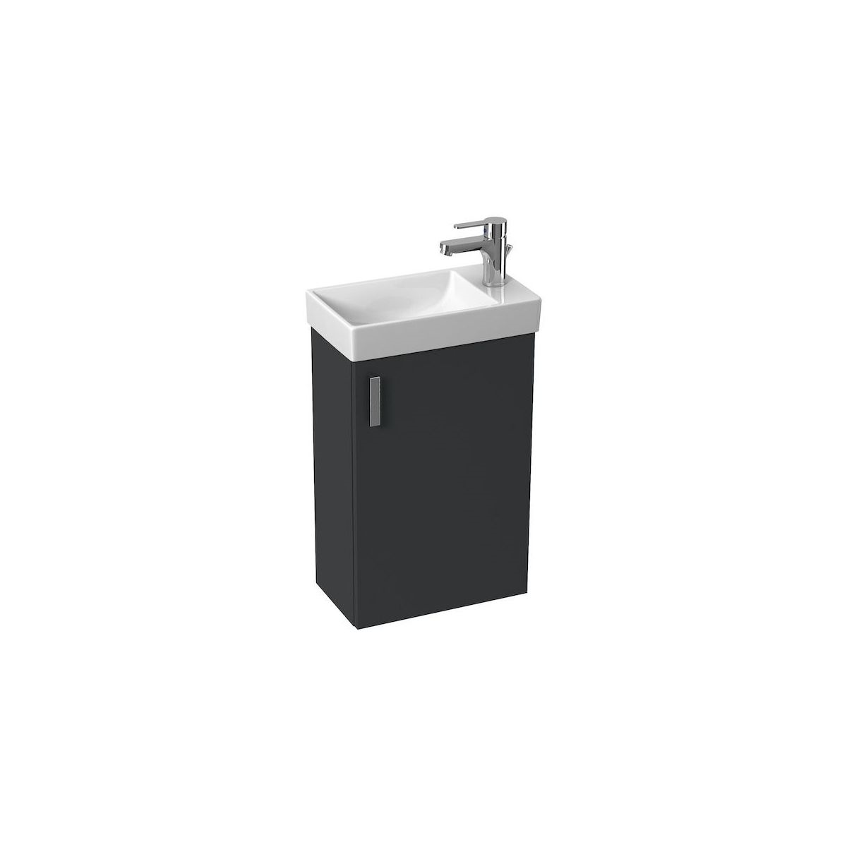 Domov Nábytok Skrinky pod umývadlo PETIT Skrinka s umývadlom 400×230 mm, 1 dvierka Ľ/P, bez prepadu, otvor pre umývadlo vpravo, šedá