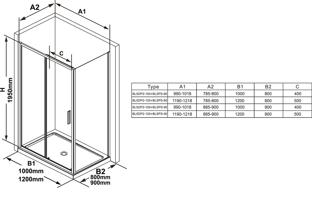 – výrobok nie je určený na samostatnú montáž, sprchové dvere BLSDP2 je potrebné objednať zvlášť, viď Príslušenstvo!