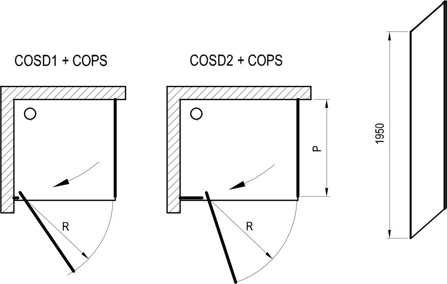 – pre kombináciu so sprchovými dverami COSD1 alebo COSD2, viď Súvisiace produkty!