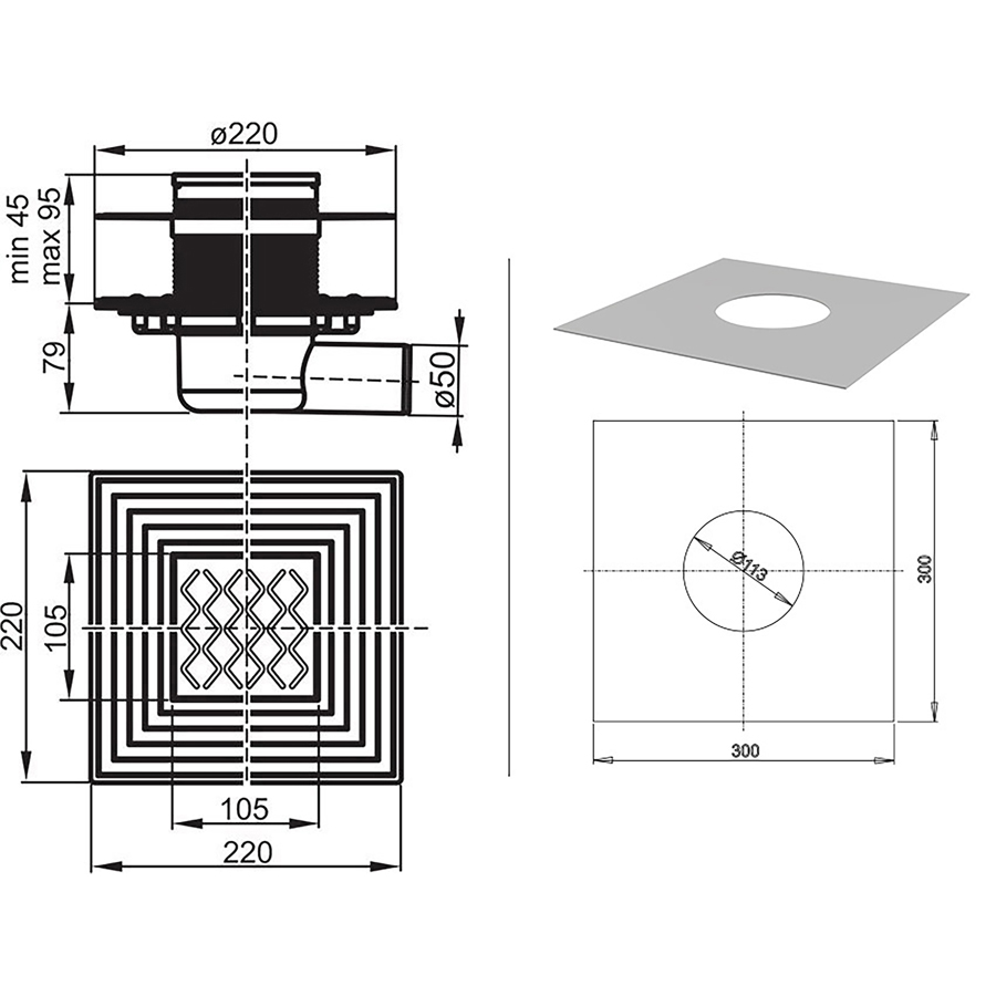 Vhodná do sprchových kútov, kúpeľní aj technických priestorov. Stavebná výška 104 mm. Límec 2. úrovne izolácie a nerezová príruba.