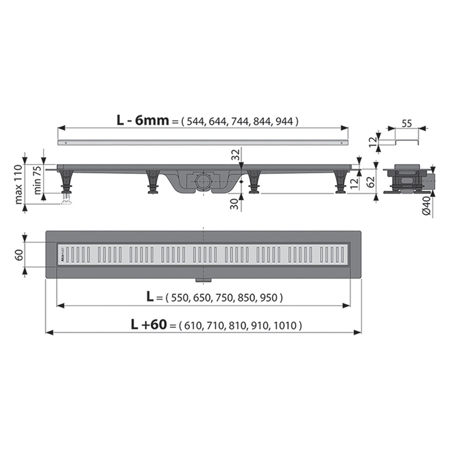 • Podlahový žľab z vysoko odolného plastu, ktorý odolá mrazu aj chémii.