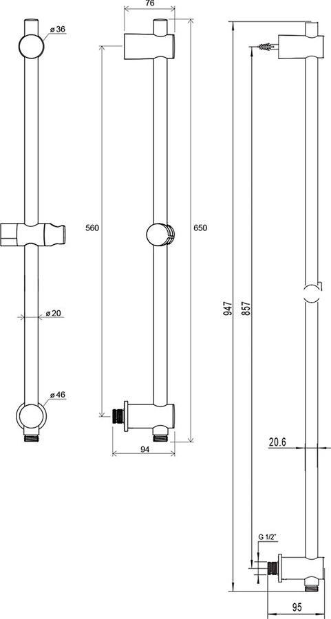 • stenový vývod vody priamo v tyči