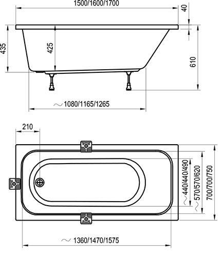 - doplnky: čelný a bočný panel, vaňový odtokový komplet