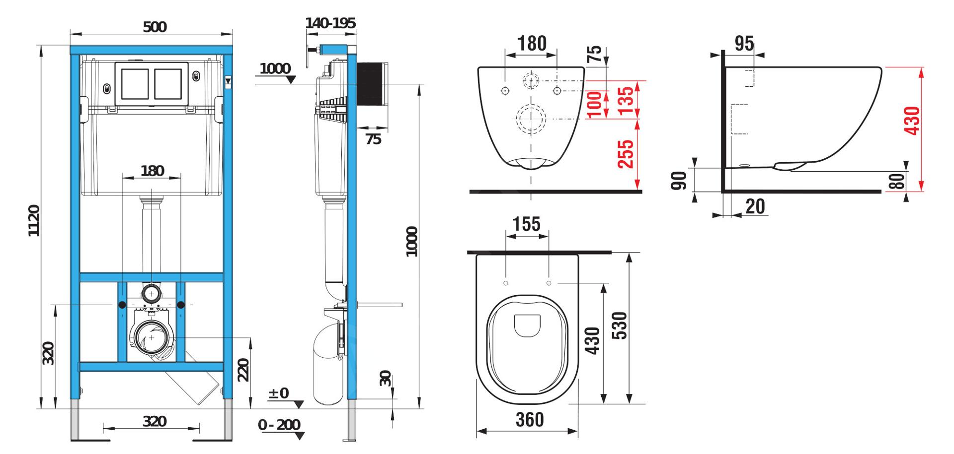 WC doska a splachovacie tlačidlo nie sú súčasťou WC setu – nutné dokúpiť zvlášť.