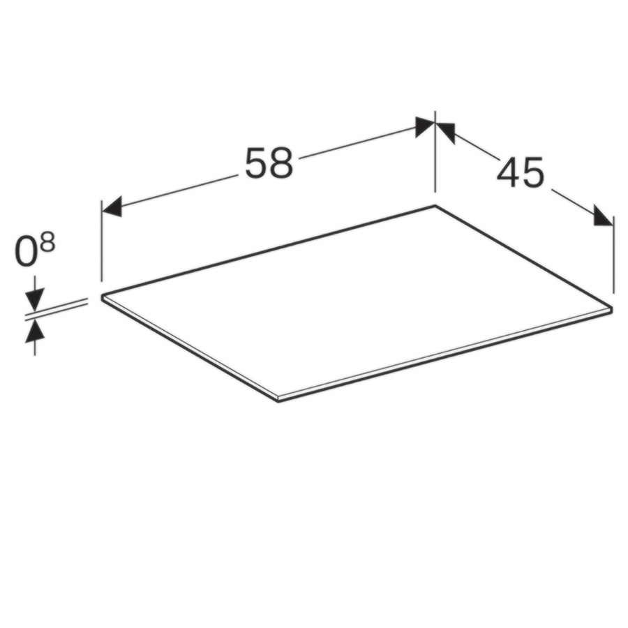 Sklenená polička Geberit Xeno2: B=58cm, H=0.8cm, T=45cm