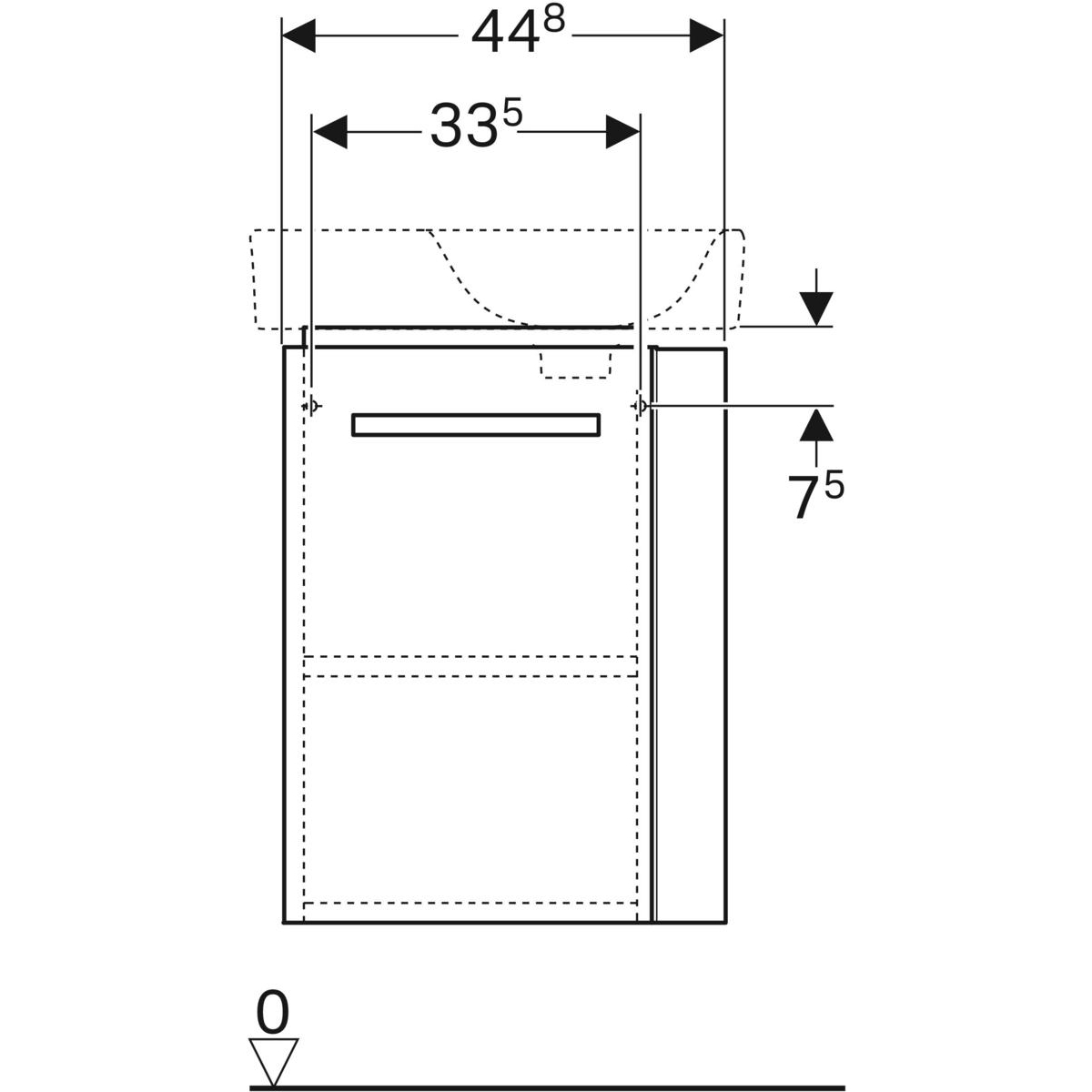 Skrinka pod malé umývadlo Geberit Selnova Compact, s držiakom na uteráky, skrátené vyloženie