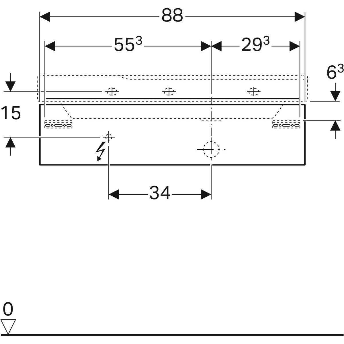 Umývadlo Geberit Xeno2: B=90cm, T=48cm, biela / KeraTect