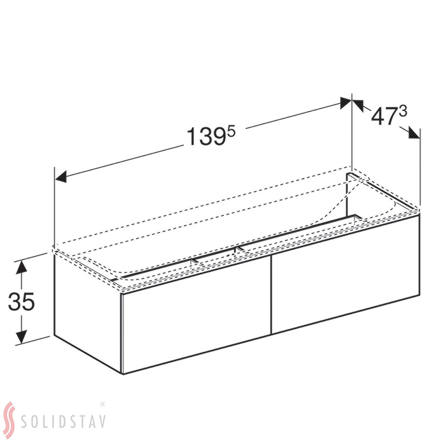 Skrinka pod umývadlo Geberit Xeno² z minerálneho materiálu, s dvomi zásuvkami